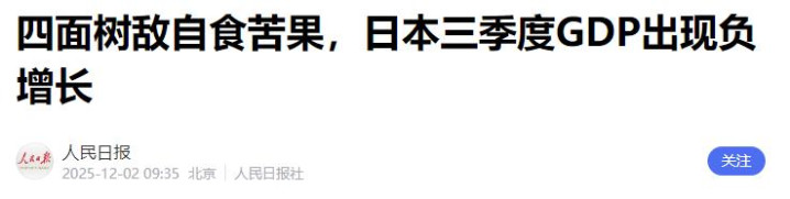 人民日报:四面树敌自食苦果,日本三季度GDP出现负增长